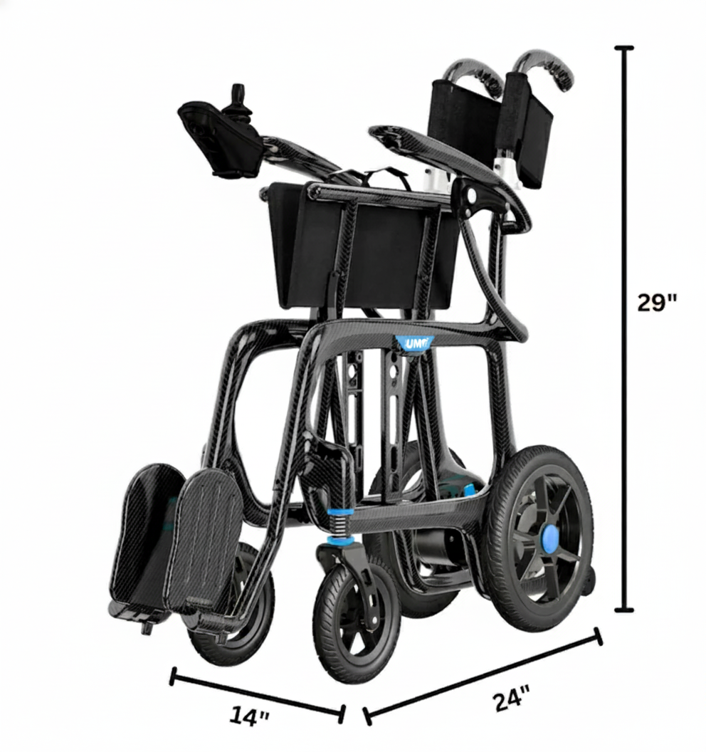 Regain your freedom with the United Mobility Plus Carbon Fiber Electric Wheelchair — the lightest power chair in America at just 29 pounds.