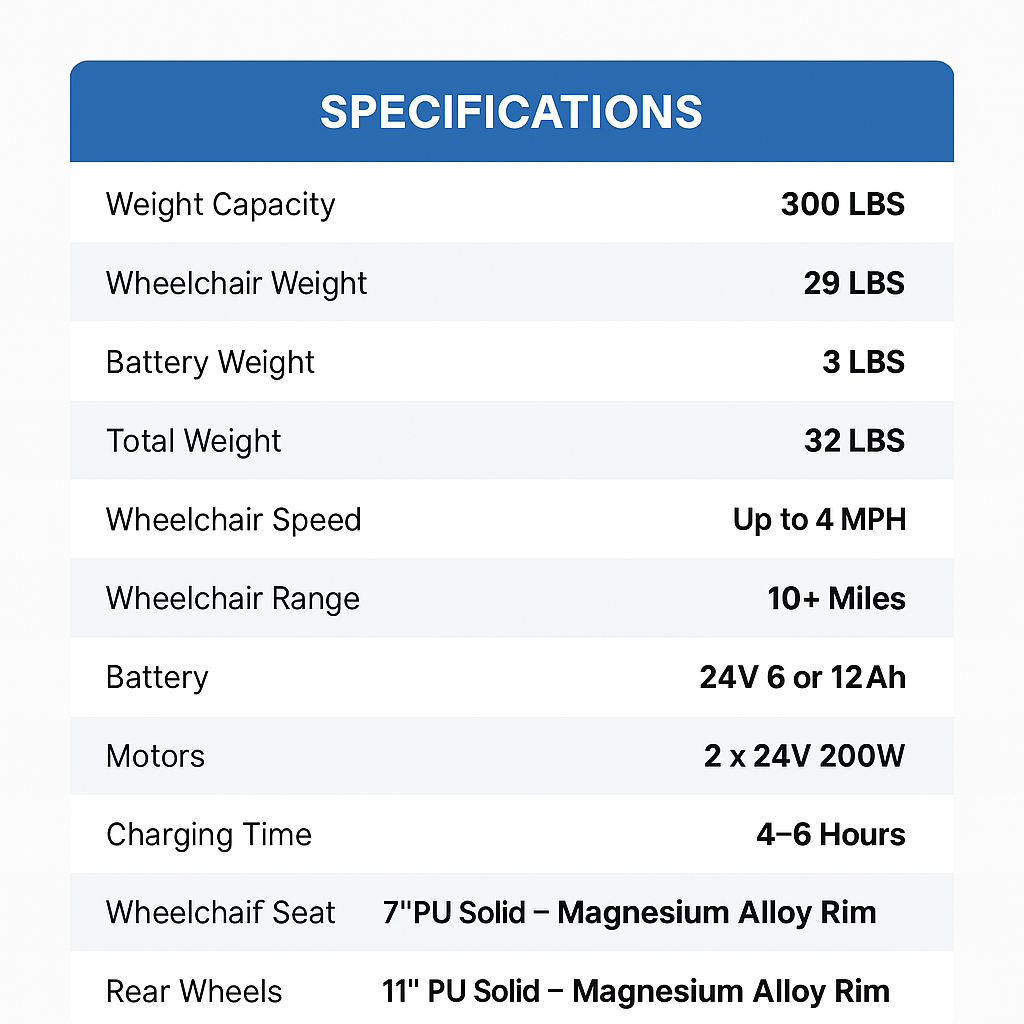 Equipped with a 24V 12Ah lithium battery, our carbon-fiber electric wheelchair delivers a dependable 10+ mile range on a single charge — perfect for daily use, errands, or longer outings.
